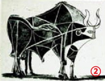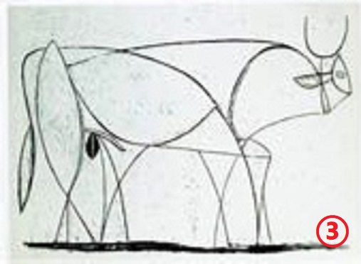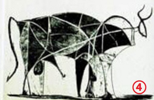 观察下面四幅牛的图片后,从具象到抽象排列顺序为( )。